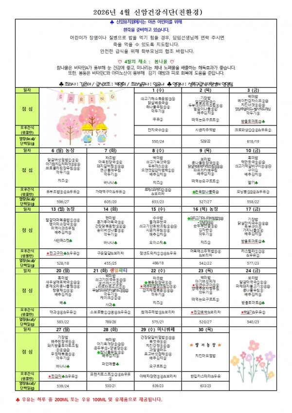 4월 식단입니다. 페이지 정보 작성자 신암유치원 댓글 0건 조회 94회 작성일 26-04-01 14:05 목록 본문 4월 식단입니다. 이전글4월 1일 26.04.01 다음글3월 31일 26.03.31 댓글 0 댓글목록 등록된 댓글이 없습니다.
